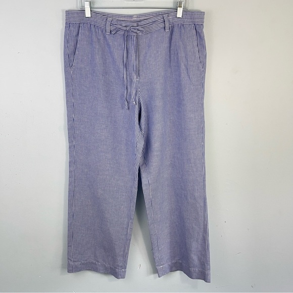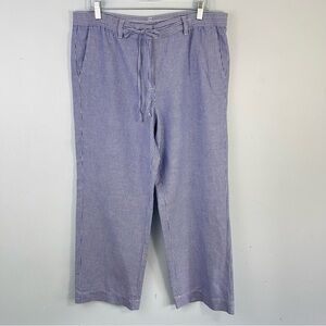 Talbots The Easy Drawstring Pant 12 Wide Leg Linen Blend Pants Coastal Striped