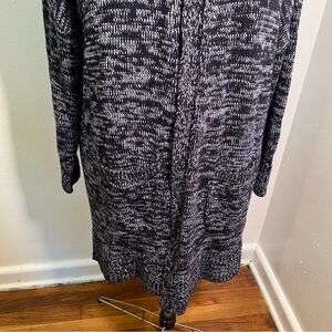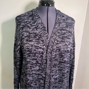 Great condition. Talbots the Oprah Magazine Collection. Open front cardigan sweater. Navy blue with purple and green knit. A very inviting jacket alternative. Heathered Cardigan is softly textured in rich marled yarns. Midweight cotton blend offers warmth without bulk. It's hard to say no. This style is a comfy topper over a soft floral dress or with a tank and jeans. It's also perfect to warm you up on a plane ride.