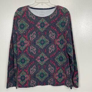 Talbots The Talbot Tee Blue Pink Long Sleeve Top XL