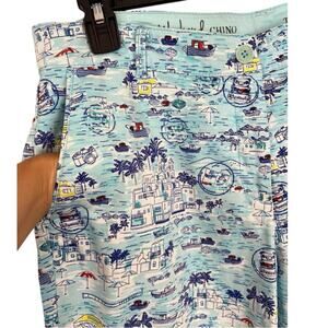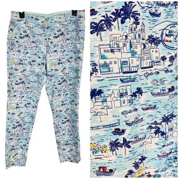 Talbots The Weekend Chino Pant in Aqua Blue w/ Tropical Scenic Print Size 12