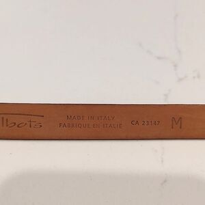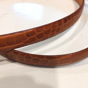 Talbot's Thin Croc Embossed Leather Belt with a Silver Buckle. This quality made, classic, light brown leather belt was made in Italy. Size Medium.