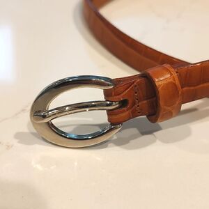 Talbot's Thin Croc Embossed Leather Belt Silver Buckle Italy