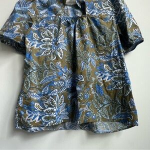 Talbots Tie Back Short Sleeve Top Women's Large Lively Floral Preppy Garden Puff