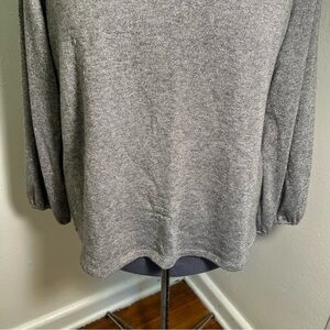 Great condition, minor wear. Talbots. Tie back smocked top. Gray metallic. Velvet tie closure in back. Long sleeve. Plus size 2X petite. 40% rayon, 39% polyester, 14% nylon, 7% metallic. Pit to pit laying flat 24” Shoulder to hem 25” Sleeve (seam to hem) 23”. All measurements are approximate and taken lying flat. Smoke free home. No trades, offers welcome.