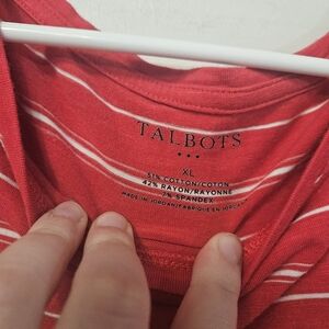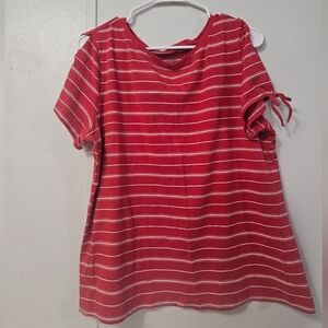 Talbots Tie Sleeve Red And White Striped Short Sleeve Tee!