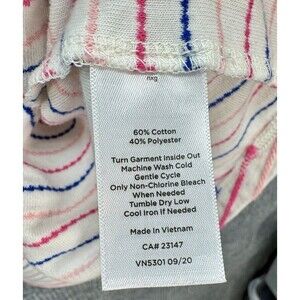 Talbots Tie Gathered Cuff Tee Shirt Womens 2X Ivory Stripe 3/4 Sleeve Boat Neck Stretch. Excellent pre-owned condition with no flaws found. Colors are ivory, soft pink, fushia & blue stripe. Measurements in photos. Fast shipping!