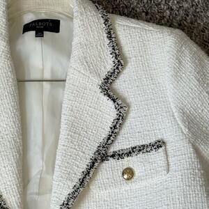 Talbots Tipped Tweed Blazer White Gold Buttons Cotton Blend 12 Petite New