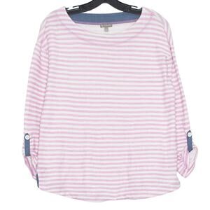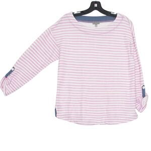 Talbots Top 3/4 Sleeve Nautical Coastal Grandma Preppy Cottage Stripe Purple MP