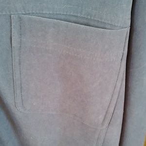 Talbot shirt/jacket in stretch microsuede. Front and back yoke and left side pocket. Slight shaping with lower bodice seaming front and back. Man tailored long sleeves with button cuff.