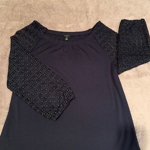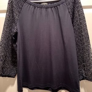 Talbots ladies blue lace sleeved top. Dress it up or wear it with jeans .. excellent condition.. size Medium....