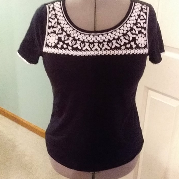 Navy short sleeve top by Talbots. White stitching above the bustline. 100% cotton. Excellency condition.