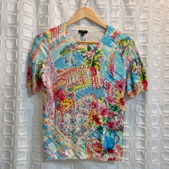 Pretty multi colored summer sweater top by Talbots. 100% cotton.