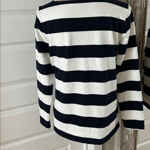 Talbots Top. Size M Navy/Cream Stripe with Red embroidered heart. Nautical theme. Tunic style. Meant to be oversized., three-quarter long sleeve, side slits. Authentic tag at the bottom. Really cute. Excellent, pre-loved,well taken care of condition.