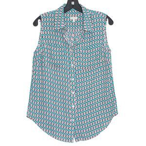 Talbots Top Birds Preppy Retro Boho Maximalist Mod Eclectic Button Up Blue Small