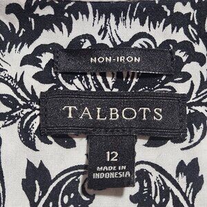 Talbots Top Black White 12 – Baroque Print Workwear Modest Chic Capsule Core