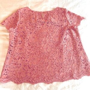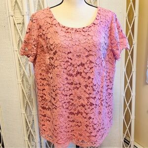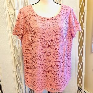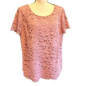 Talbots Top Dusty Rose Lace Blouse Short Sleeve Lined Scallop Hem Plus size 18W