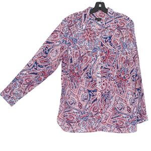 Talbots Top Floral Paisley Cottage Boho Romantic Preppy Button Up Red Blue XL