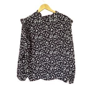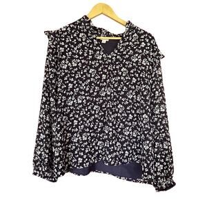 Talbots Top Floral Print VNeck Blouse Long Sleeve Boho Womens XL
