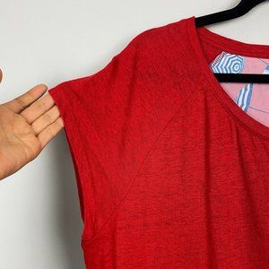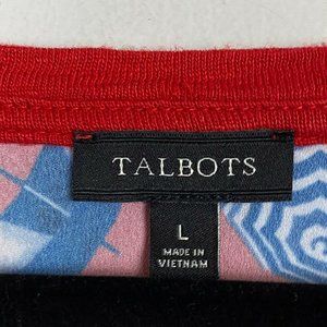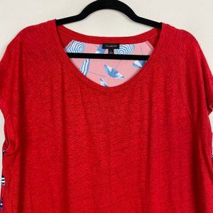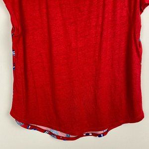 Talbots Top Linen Front Blouse Umbrella Novelty Print Short Sleeves Red Large