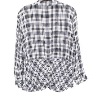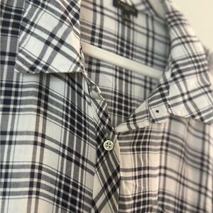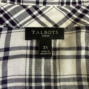 Talbots Top Preppy Grunge Rustic Western Plaid White Black 3X Plus Size