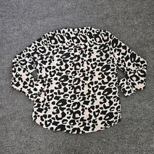Talbots Top Shirt Womens Large White Pink Leopard V Neck Long Sleeve Career