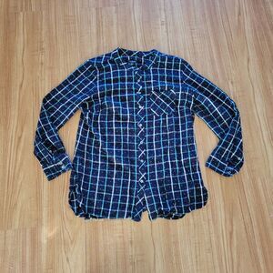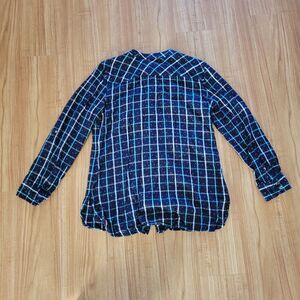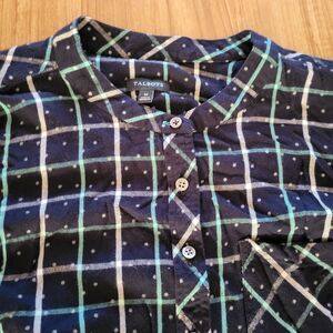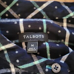 Talbots Top Shirt Womens Medium Blue Green Plaid Polka Dot Flannel Career Office