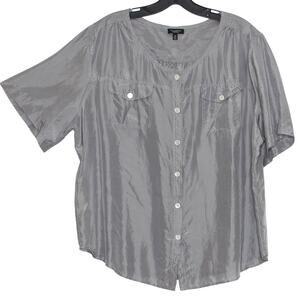 Talbots Top Silk Button Minimalist Classic Business Casual Quiet Luxury Gray 20