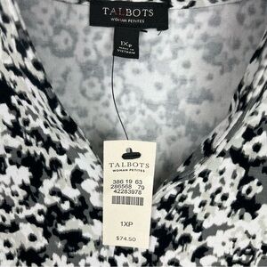 Talbots Top Size 1XP Long Sleeve Split Neck NWT Dark Floral Career Work Office