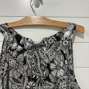 Talbots | Top Sleeveless Black White Gold Floral Cotton- Size 3X