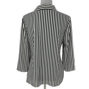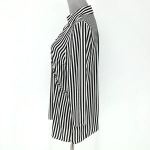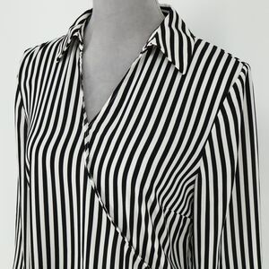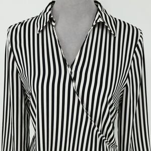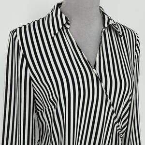 Talbots Top Small Women's Black White Stripe Blouse Side Zip Pullover Faux Wrap