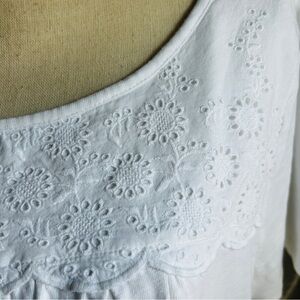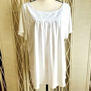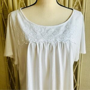 Talbots Top White Eyelet Scallop Trim Tee Soft Cotton Blend Short Sleeve size 1X