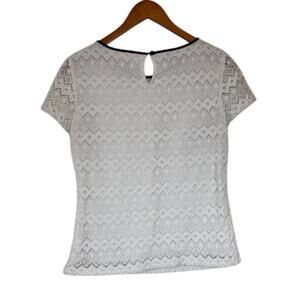 Talbots Top Women 6 White Lace Eyelet Mature Office Workwear Cotton Lyocell