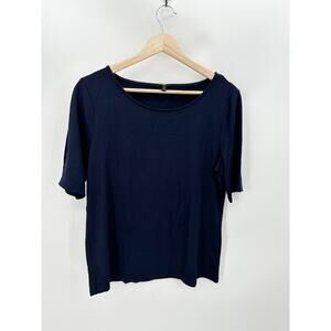 Talbots Top Women LARGE PETITE Dark Blue Short Sleeve Stretch Rayon Blend