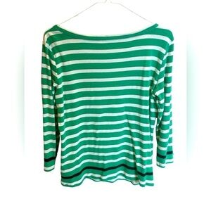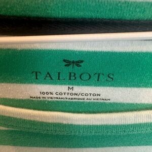 Talbots Top Women Size Medium Green White Stripe Preppy 100% Cotton