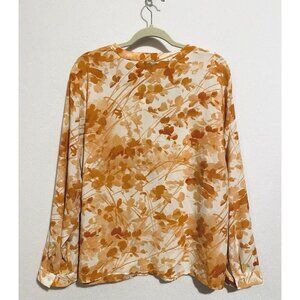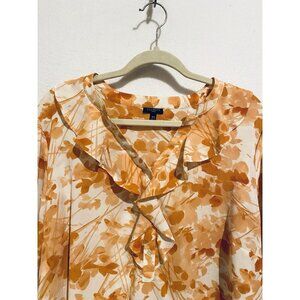 Talbots Top Womens 18W Orange Floral Ruffle Front Popover Chiffon Romantic