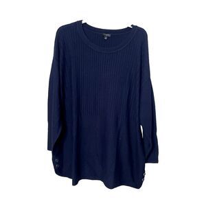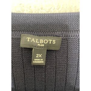 Talbots Top Womens 2X Dark Solid Blue Knit Buttons Nautical Cruise Cotton Rayon