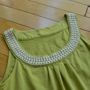 Talbots Top Women's Chartreuse Green Sleeveless Beaded Scoop Neck Tee Medium M