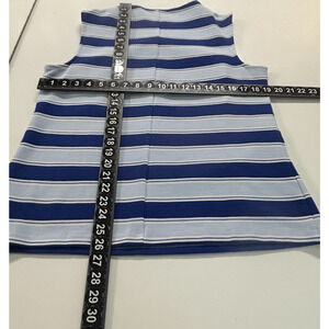 Talbots Top Womens Large Blue White Stripe Textured Button Shoulder Stretch
