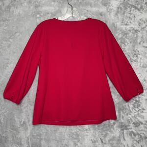 Talbots Top Womens Large Petite Pink 3/4 Sleeve Split Neck Stretch Pullover