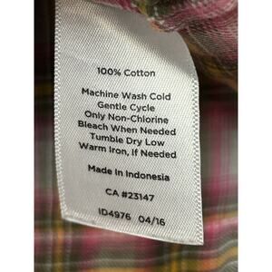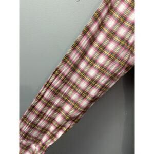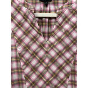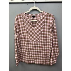 Talbots Top Womens Large Popover V-Neck Plaid Pink Pastel Lightweight Preppy