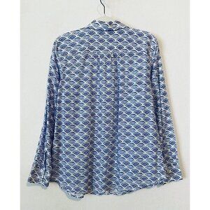 Talbots Top Womens Medium Blue Rainbow Print Button Up Lightweight Cotton