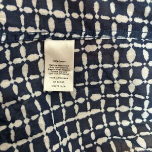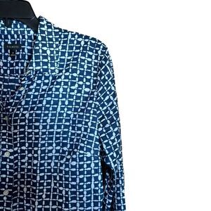 Talbots Top Womens Medium Blue White Print Button Up Cotton Shirt Blouse