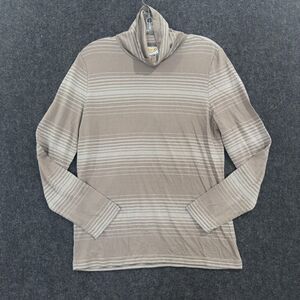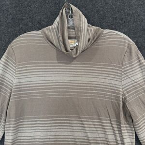 Talbots Top Women's Medium Petite Brown Metallic Stripe Cowl Neck Long Sleeve