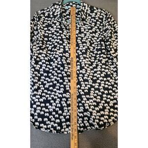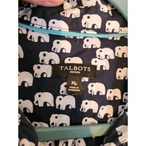 Talbots Top Women's Petite Medium Mp Elephant Novelty Button Up Shirt Roll Tab