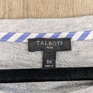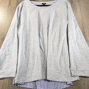 Talbots Top Womens Plus 3X Gray Blue Striped Mixed Media Long Sleeve High Low