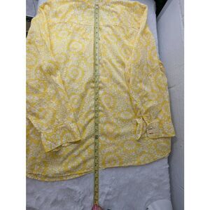 Talbots Top Womens Plus 3X Yellow Floral Roll tab Sleeve Button Up Artsy Blouse 100% Cotton Lightweight