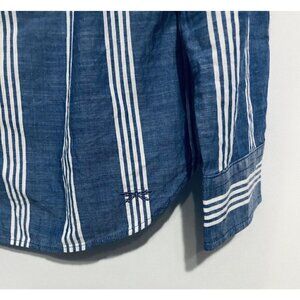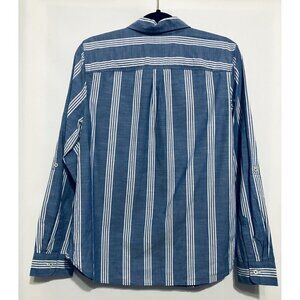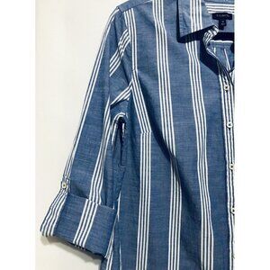 Talbots Top Womens Size 10 Blue White Striped Button Up Roll Tab Sleeves