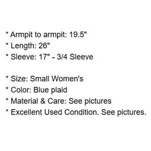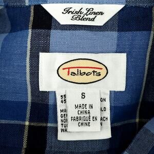 Talbots Linen Top Size Small Women's Blue Black Plaid Blouse Button Up Irish Linen Blend