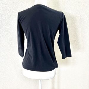 Talbots Top Womens Small Petite Black Beaded Neck 3/4 Sleeve Round Neck Casual