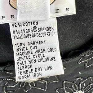 This Talbots top is perfect for any casual occasion. The black cotton fabric is adorned with beautiful beaded accents and a floral pattern, giving it a stylish touch. The 3/4 sleeves and round neckline make it suitable for all seasons, while the pullover closure ensures comfort and ease of wear.